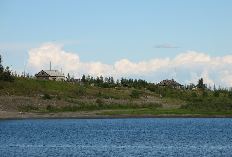 045 Вид на село Джарджан с реки Лены. Жилые дома прячутся за деревьями |