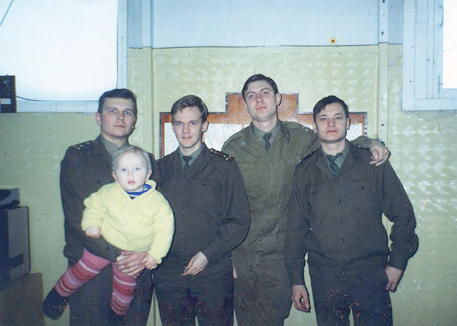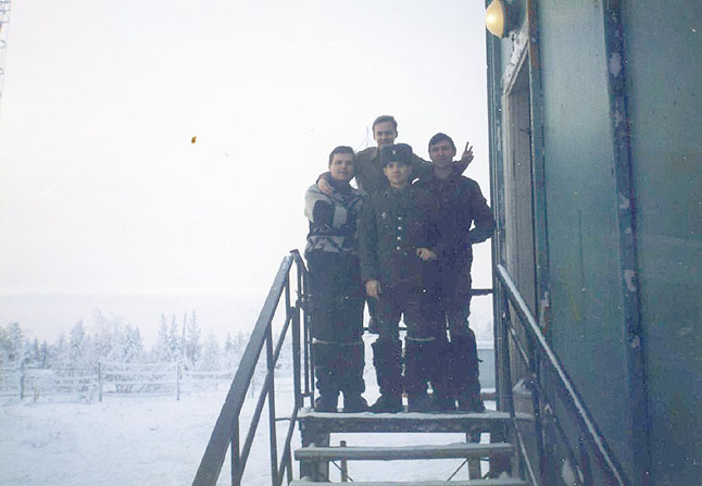 032 Юрий Иванов и Алексей Гусев с рядовыми Пеней (водитель) и Калининым (механик ДС). 1996 год