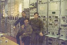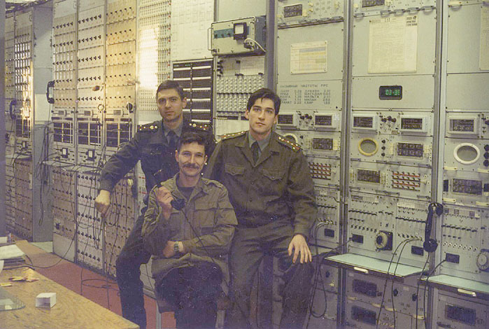 027 Алексей Гусев, Вячеслав Королев («Амур-1») и Михаил Ипполитов «Амур-1» в техническом здании. 1997 год