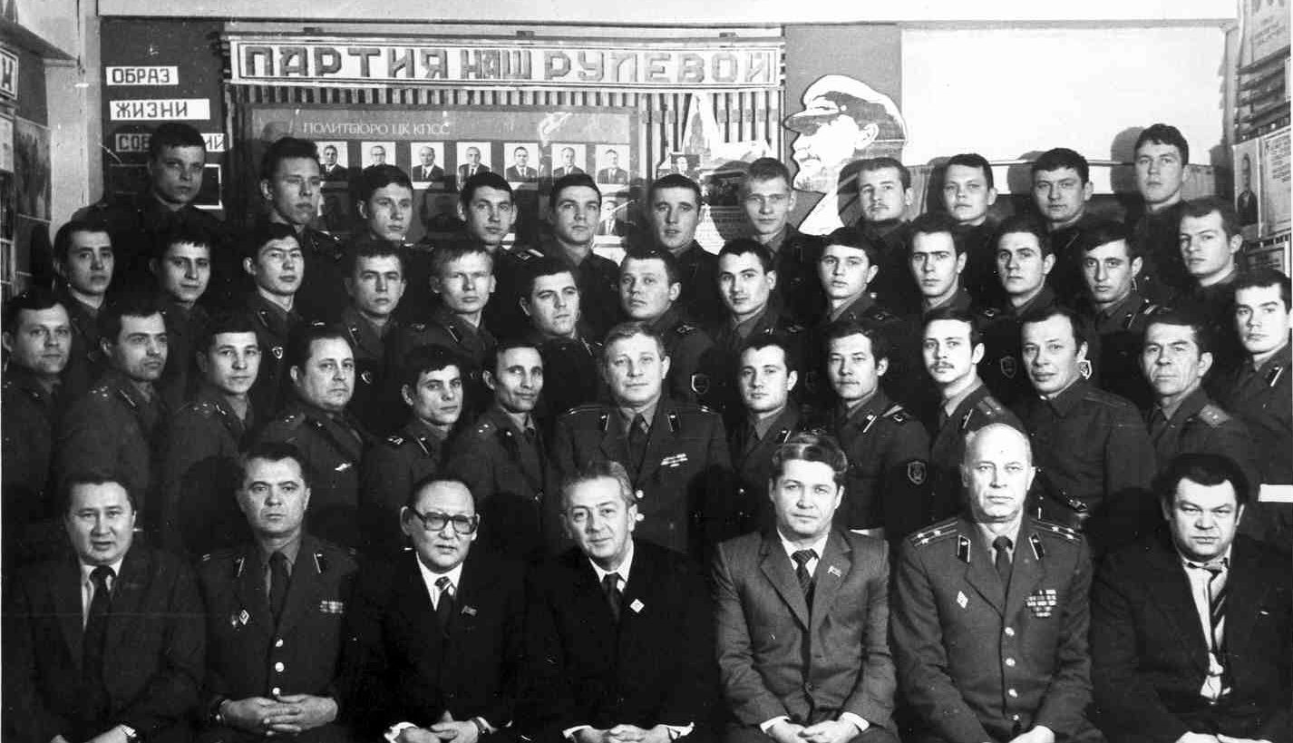 Куденчук Н.К., капитан Коптюх П.М., ст. лейтенант Хабибулин Р.М. (зампотех), прапорщик Тюрин С.Ф., Кулиш Леша, прапорщик Руднев В.Т., подполковник Спирин А.Н. (командир части), Батурин Сергей, Хамзин Марат, лейтенант Лужецкий Г.Э., капитан Мартинович А.Р. (замполит), прапорщик Цыбульский Н.Ф., Крастниш Гунар.