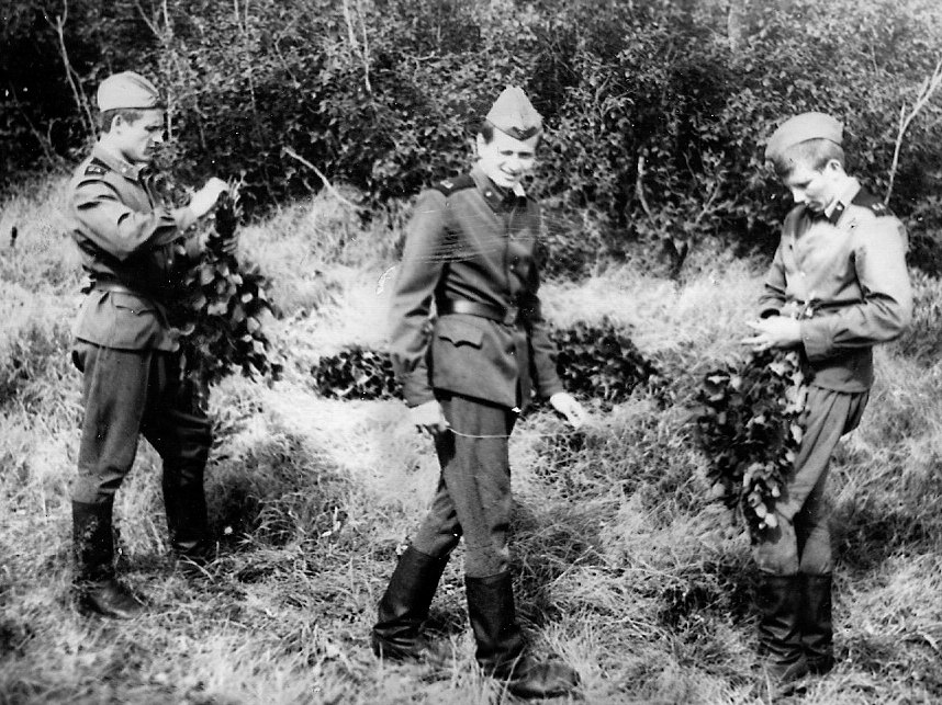 124 Плахутов, Щербаков и Якуба на заготовке веников для бани. 1978 |