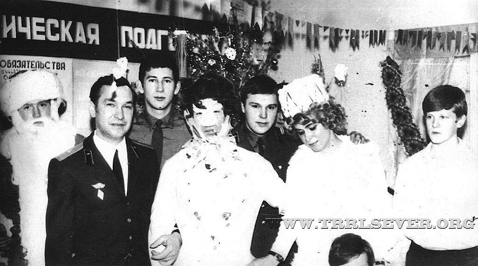 202 Начальник станции Нечаев Ю.А и замполит Максимов В.И поздравляет деж.смену с Новым годом |