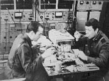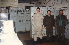 015 В техздании "Яузы". Начальник смены "Днепра" В.Ульянкин. НВО "Днепра" С.Спорягин. Начальник смены "Яузы" А.Лунякин. Весна 1999 |