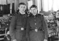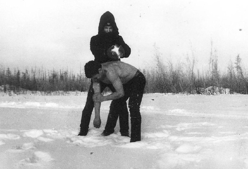 091 Зимние виды спорта (мороз градусов 40), Маинсков Николай радист (сзади), Перевалов Юрий радист (впереди), зима 1983 года |