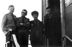131 Л-т Мохов С.Ю., ст.л-т Чаплиев, л-т Смекаленков А.Н. и ст.л-т Медведев А.В. на крыльце техздания. 1981 год |