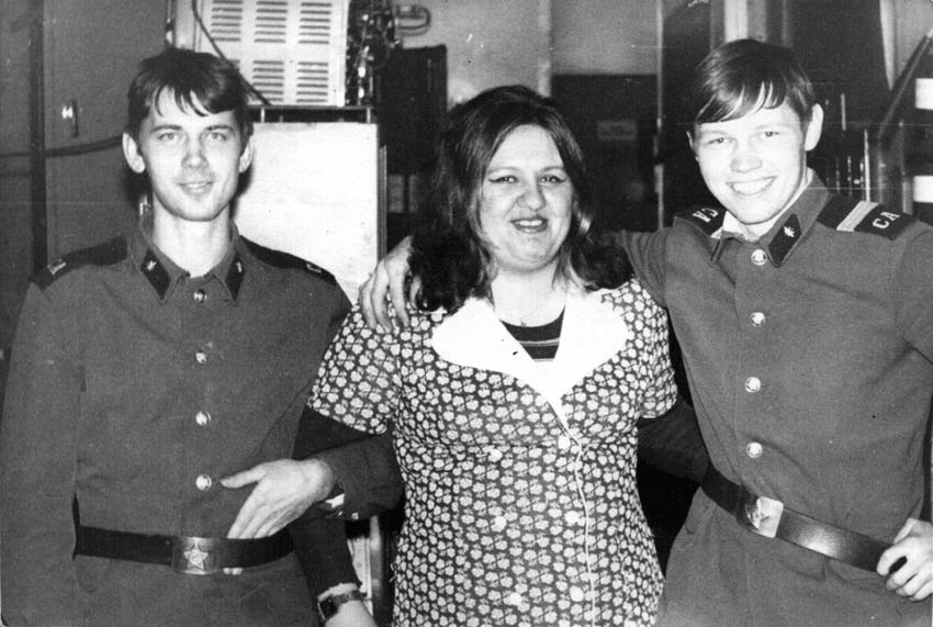 147 Ряд.Жуков Ю. - техник ДС, Звоненко В.Л. - техник ДС и с-т Кобзарь Е. - техник РРС. 1980 год |