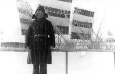 158 Звоненко В.Л. на фоне антен станции "Волга". 1980 год |