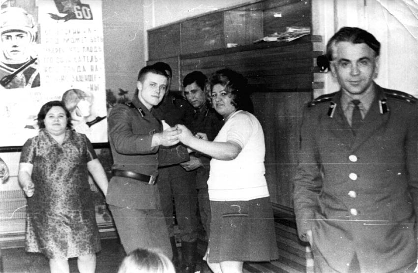 160 Слева-направо: Надежда Тур , мл.с-т Захаров, Звоненко В.Л., к-н Царан Г.(замполит) |