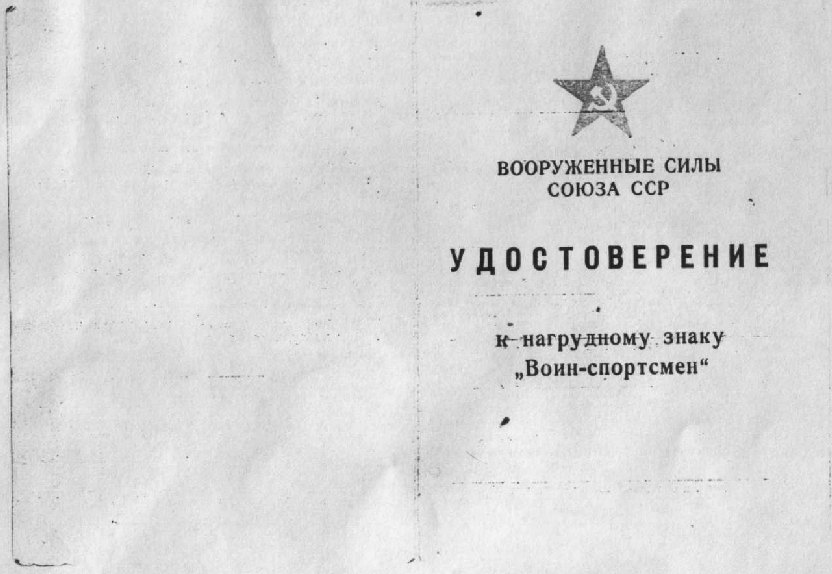 Удостоверение к знаку "Воин-спортсмен" А.Романовского