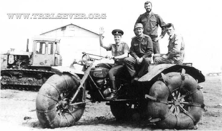 Называлось оно в наших местах «каракатица» или «каракат». Двигатель от Ижа , две коробки, одна мотоциклетная, другая от какого-то ГАЗа, 16 скоростей вперед и 4 назад. Есть компрессор для накачивания колес. На самой 1-ой скорости сдвигало с места ЗИЛ-157. Один недостаток - нет ТОРМОЗОВ.