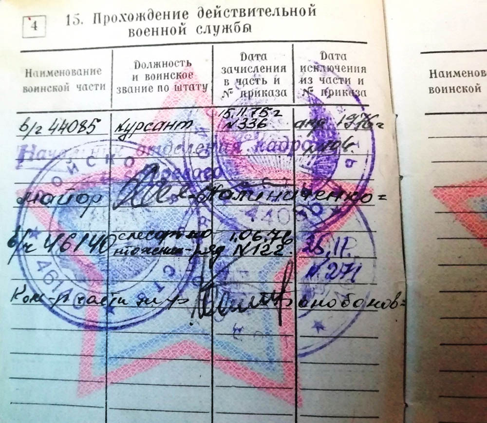 Ниже четыре страницы из военного билета Марата Халилова