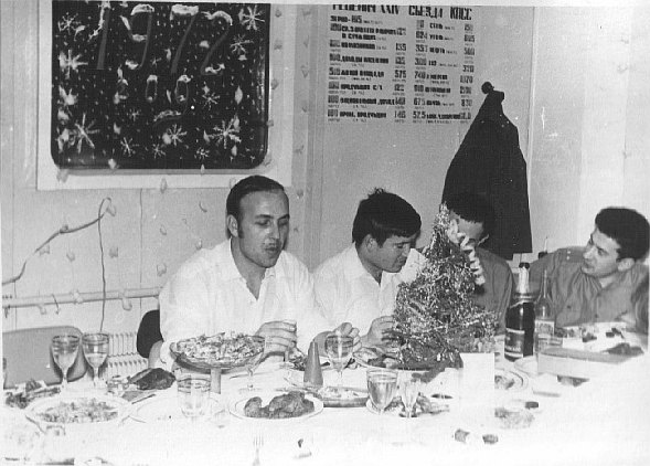089 Встреча нового 1972 года. Сотрудник ГПР, замполит Шилов, энергетик (?), л-т Тух |