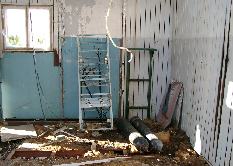 030 Сохранилась голубая покраска стен внутри здания |