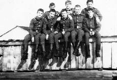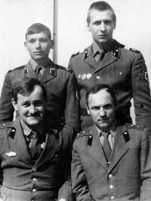 043 Июнь 1986 года, 1-й расчет 2-й смены: рядовые Пинчук, Бренер, Водинчар, сидят: ст.л-т Щепотин и ряд. Балдин |