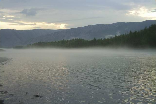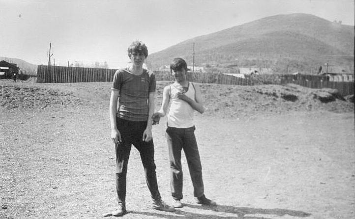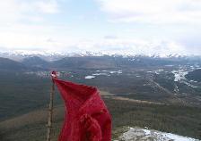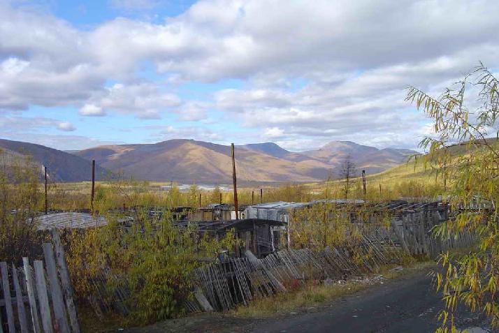 001 Поселок Ыныкчан. За горой,на другом склоне площадка "Милана". Сопка эта метров 400-450 высотой, называли ее "Маяк". Фотография сделана с сопки "Три Богатыря" |