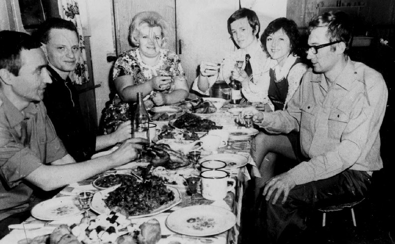 044 Встреча нового года. Исаев, Храпунов, жена замполита (кажется Наталья), Шепель с женой, Свирин |