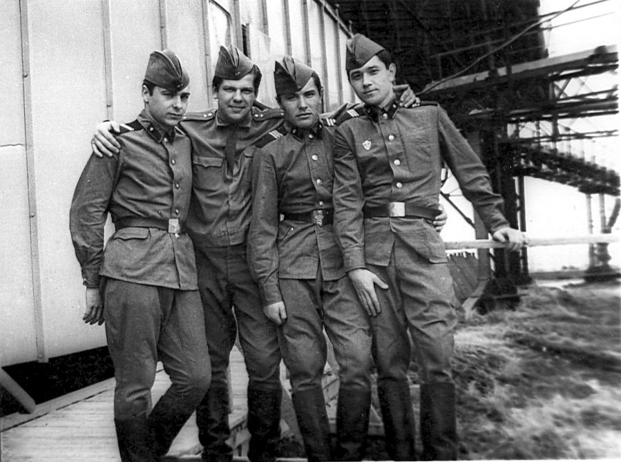 В гражданском - молодые лейтенанты выпускники КВВИДКУС 1986 года на стажировке и переподготовке. В форме Колбянов П.И. уже год как начальник расчета " Чайки" |