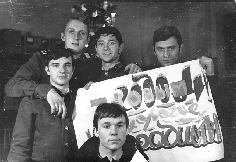 012 В техздании, канун нового 1974 года. Глумов Ю, Кузьминых В, ?, Кулабухов С, Южаков В. |