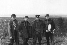 007 Смена л-та Владимира Сорокина. Коробченко, Кузьминых В., В.Сорокин и Соцков Алексей. 1973 год |