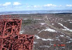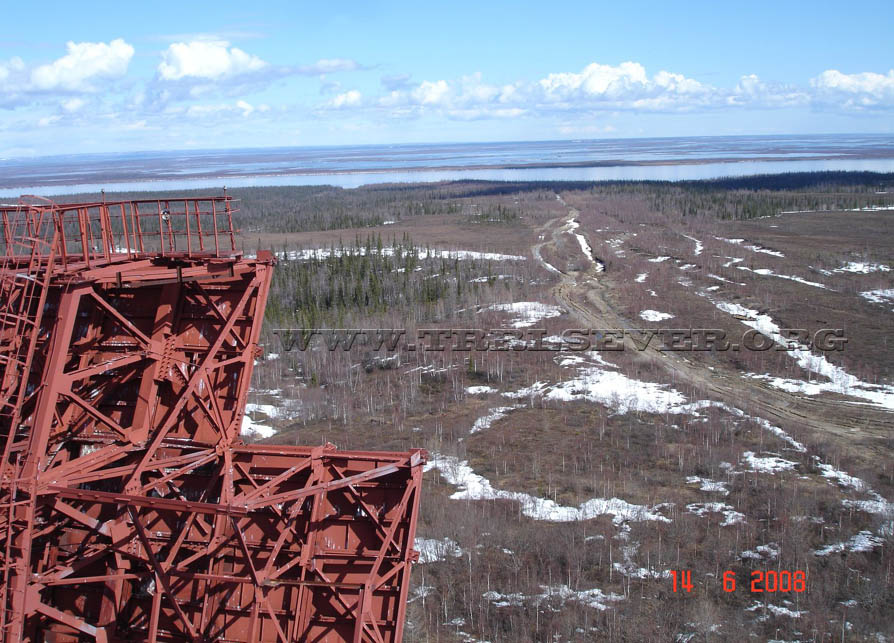 062 Вид с антенны 103-й линии. Внизу - разоренное техздание. Слева - антенна на Березово, а справа - антенна на пос. Мульда. Июль 2008 года |