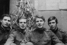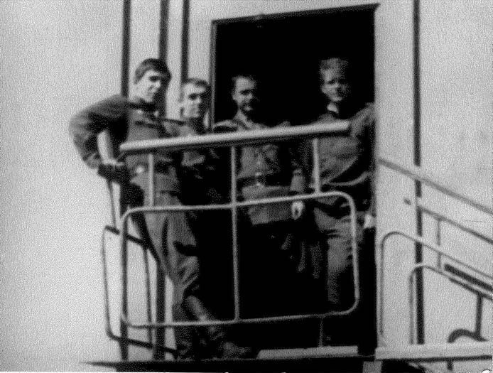 105 Смена возле техздания. Осень 1971 года. Слева на право: с-т Филиппов А., с-т Симанский Н., л-т Белонович С., с-т Гвозденко Б. |
