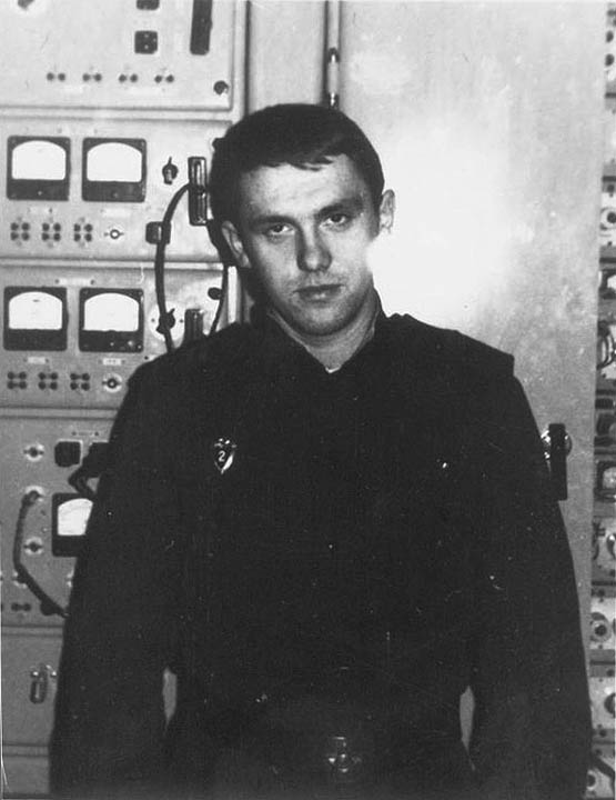 103 Смена перед выходом на дежурство. Слева на право: Шац С. - техник РРС, Емельянов О. - техник-энергетик, Гвозденко Б. - техник РРС, Филиппов А. - техник РРС. 1971 год |