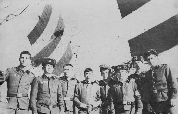 Призыв 79-81 гг слева-на-право: мл.с-т техник ДС Решетников С., с-т. техик ДС Лукавенко М.; повар Юрських Ю., мл.с-т техник-энергетик Нургалиев А.; ряд.механик РРС Абузяров В., ряд. механик РРС Киселев С., ряд. механик РРС Чепкасов Е., ряд. механик-энергетик Мухаметдинов Р.