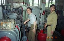 042 Техник ОРиР "Амура-1" Ярайкин (слева) проводит регламентные работы в дизельной "Дона" 1997 год |