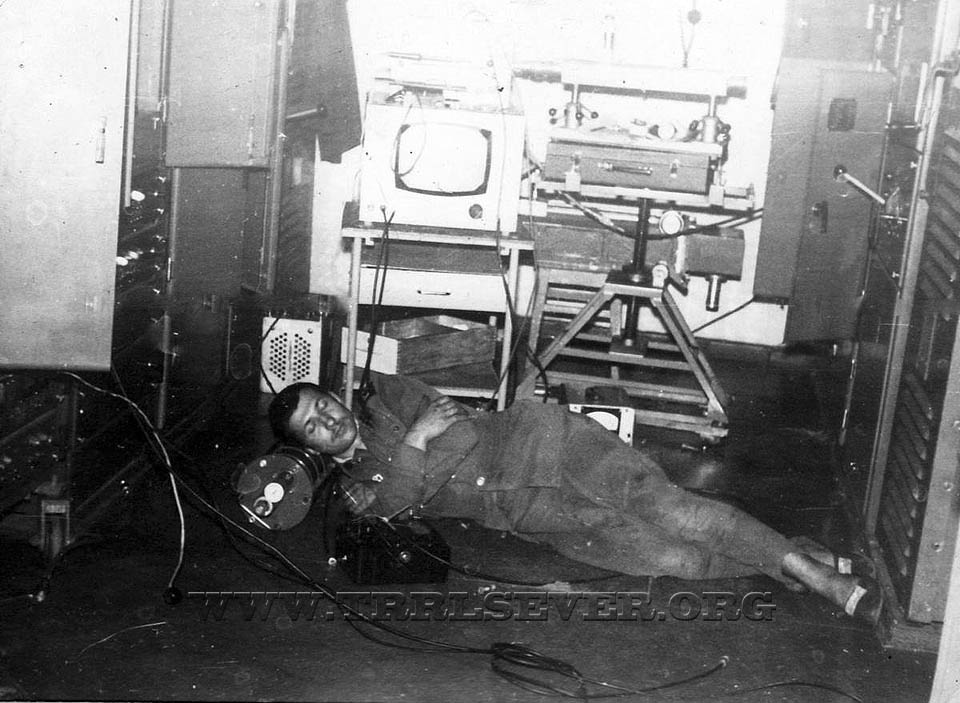 059 В.Шевчик в зале передатчиков. В армии и высоковольтный клистрон хорошая подушка. 1977 год |