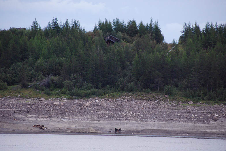 041 Село Джарджан. На окраине села видно здание метеостанции (слева). Основные же дома скрываются на холме, в зеленой чаще листвениц |