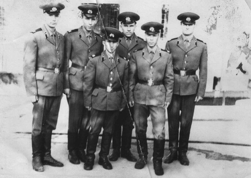 098 Актюбинск, осень 1974. Взвод курсантов техников-энергетиков первой учебной роты в/ч 74178. В центре командир взвода капитан Бурлака, слева - зам.ком. взвода ст. с-т Коробков