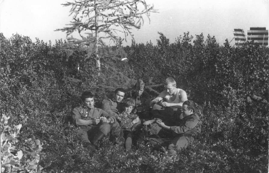 134 За грибами. В центре – сын прапорщика Молодцова (?) 1973 год |