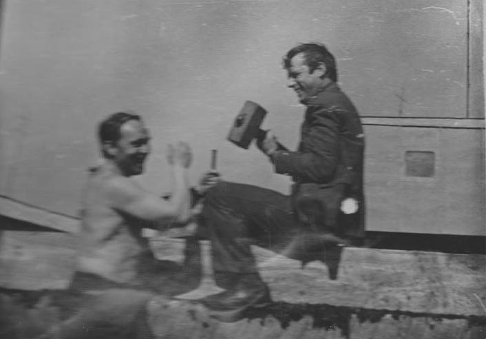 201 Строительсво бани. 1977 год. Два капитана: зампотех- Борисов и замполит - Царинник |