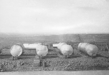 011 Трубопровод до Индигирки - труба лежит на сваренных боками бочках |