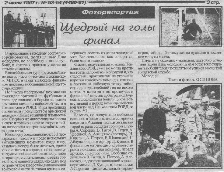 Вырезка из районной газеты "Полярная звезда" Пенжинского района Корякского автономного округа