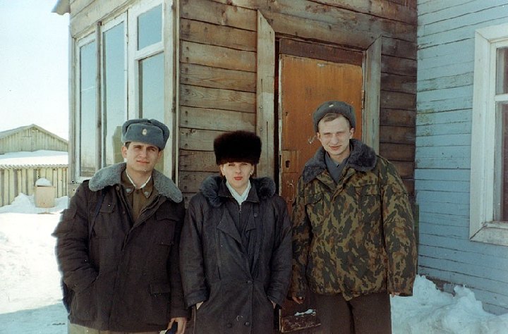 083 А.Никитин,медсестра О.Кириенкова, А.Рогозин возле "Рижского дома" 1997г |