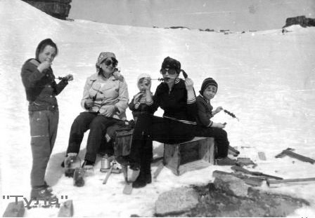 032 Пикник на весеннем снегу. Семьи Шамкиных и Федоровичей. 1980 год. |