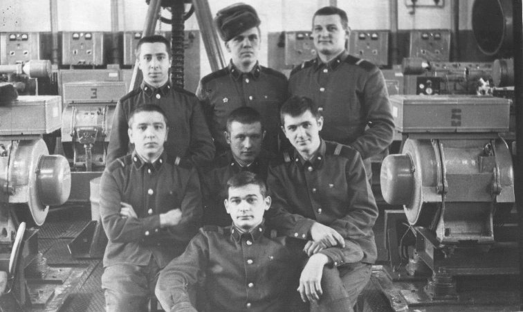 042 Отделение радистов верхний ряд слева на право: с-т.Маркин, с-т.Лисневский, с-т.Маестренко,?,Иван Удовичко. Второй ряд ?, ?, Николай Самсонов. 1973 год |