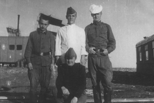 043 Хоз.отделение: сидят слева на право: стрелок Чайнюк, ком.отделения.??. Стоят в середине киномеханик и стрелок Лакиза. Остальные - ? |