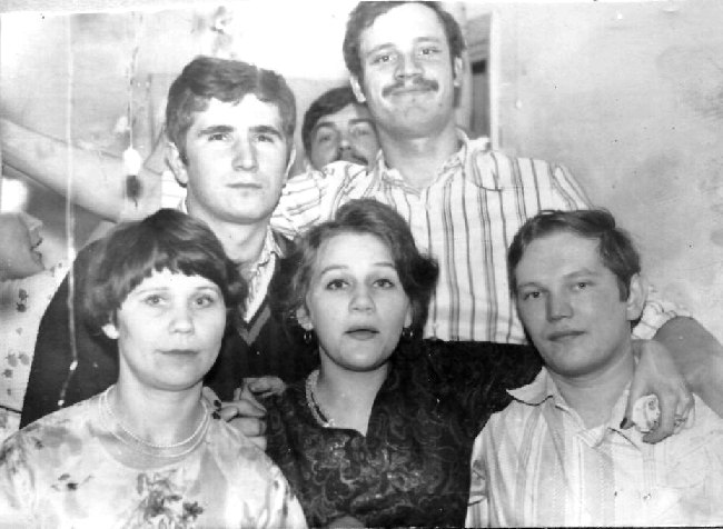 069 Встреча Нового 1982 Года, уже в 2-х этажном доме. 1-й ряд: Света Протопопова, Г.Логиновская, П.Гордеев, 2-й ряд: Г.Максимов, А.Игнашин, С.Машканцев. |