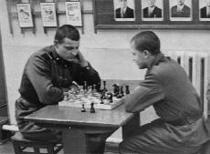 113 В лениской комнате: ком.отделения энергетиков с-т.Савинов и техник-энергетик с-т.???. 1974 год |