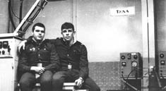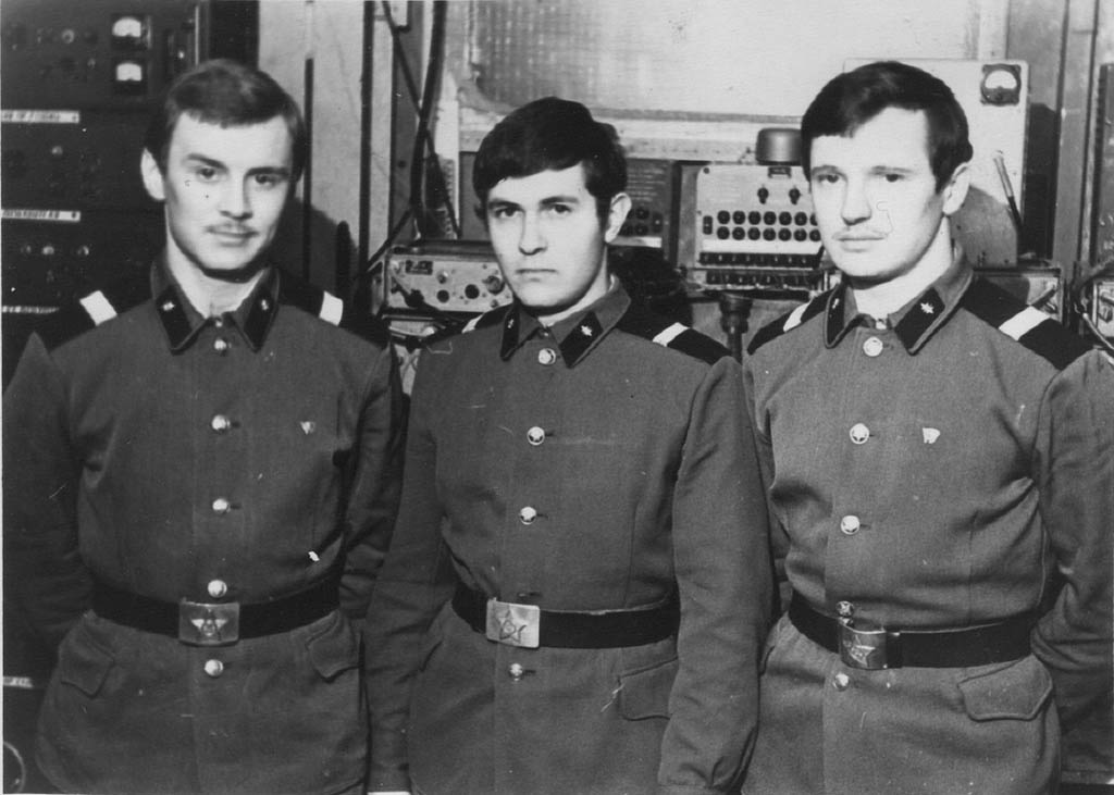 224 Смена радистов ст.л-та Соловьева первый в строю радист с-т Маркин Владимир, второй - с-т Редькин, с-т.Самсонов, нач.смены ст.л-т.Соловьев.1973 год |